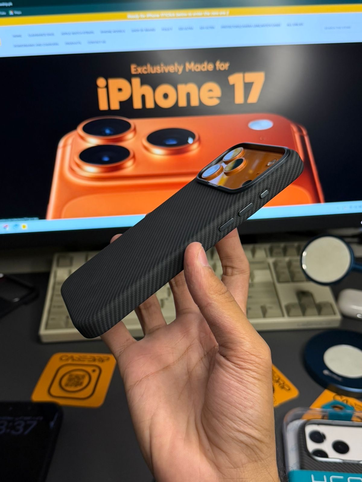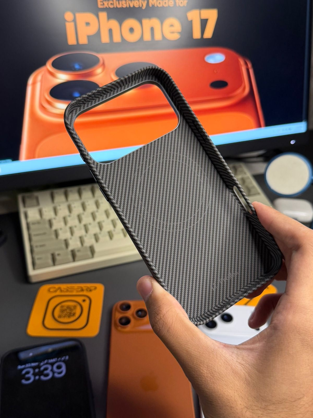 A lightweight, durable case featuring a premium carbon-fiber textured finish for a sleek and modern look. Designed for strong everyday protection, it offers a refined grip, precise fit, and stylish performance-inspired design.