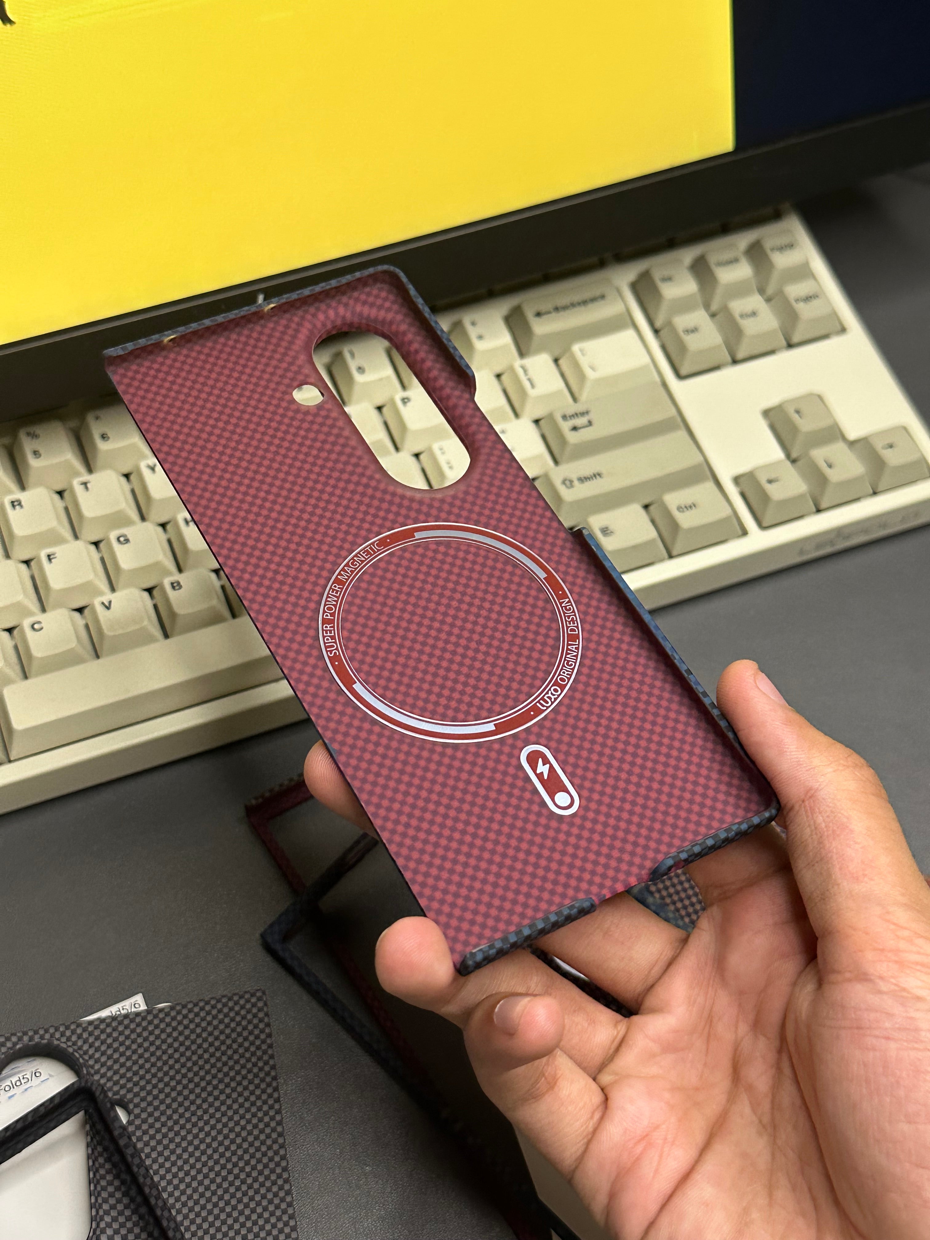 Experience premium protection with the Luxo blue Sunset Case — where elegance meets durability. Crafted with a soft matte finish and warm desert tones, it adds a luxurious touch to your Fold 7. The built-in MagSafe compatibility ensures effortless magnetic attachment for charging and accessories. Designed for a slim, perfect fit with raised edges for camera and screen safety. A stylish statement piece that keeps your device secure, sleek, and ready for every adventure.