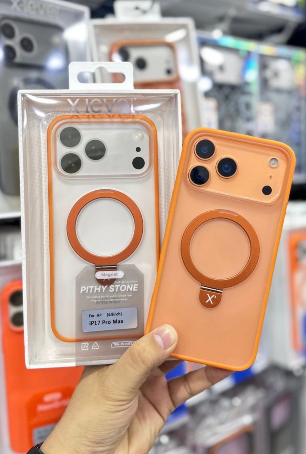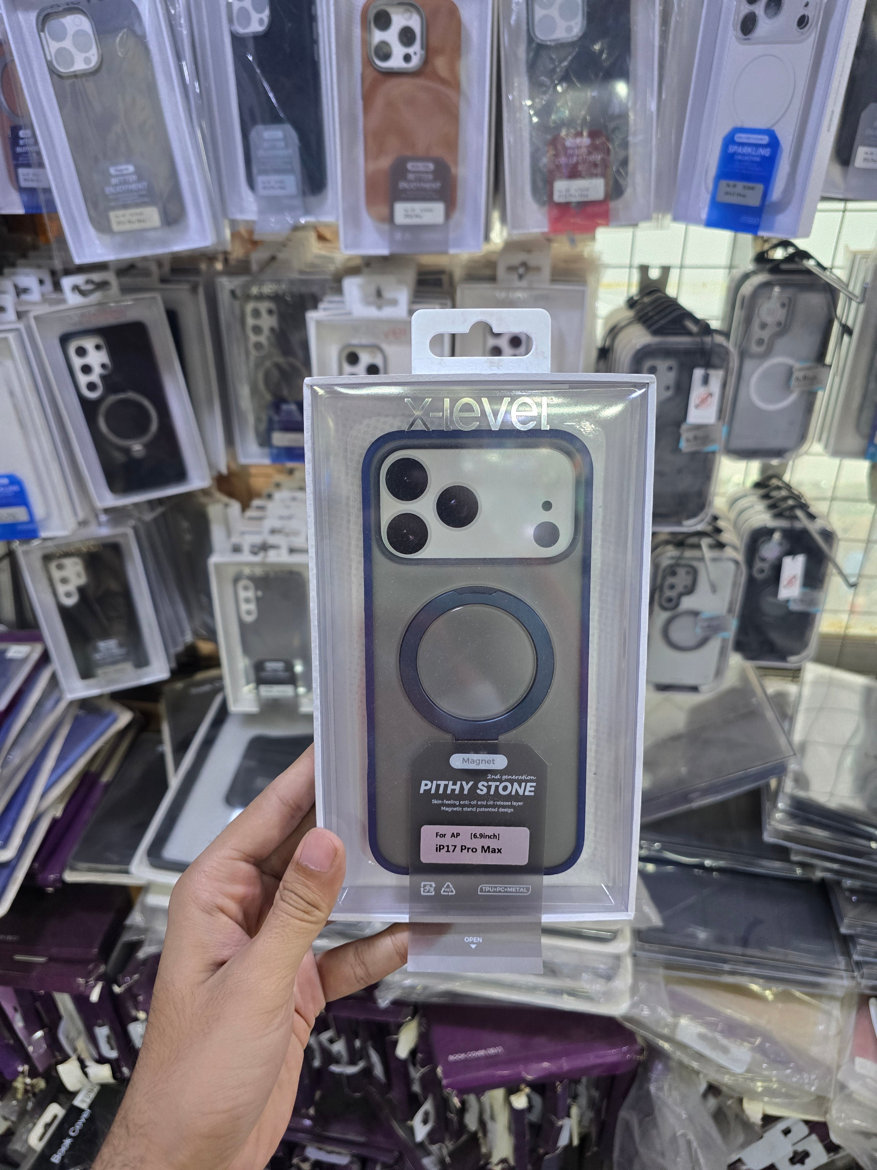 The X Level Matte Stand MagSafe Case for iPhone 17 Pro Max offers a slim, soft-touch finish with strong built-in MagSafe alignment for secure charging and accessories. Its integrated foldable stand provides convenient hands-free viewing, while the durable matte shell resists fingerprints, scratches, and everyday wear—delivering sleek protection without added bulk.”